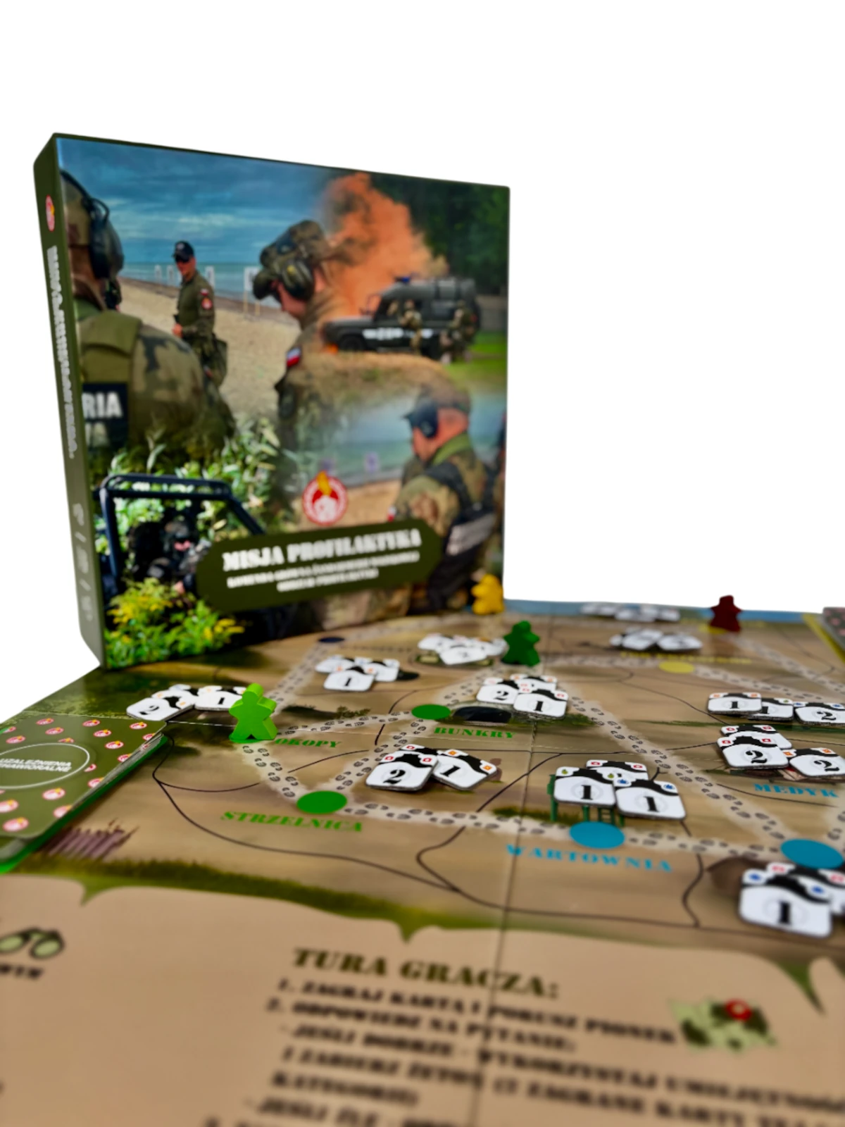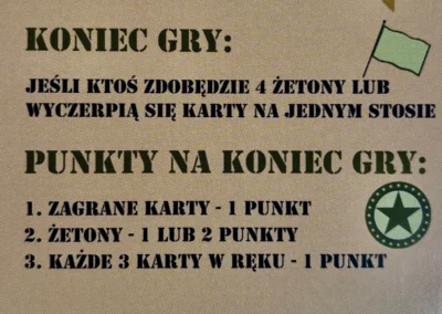 Każdy egzemplarz to kompletne narzędzie szkoleniowe gotowe do użycia w jednostkach wojskowych na terenie całej Polski. Gra przeznaczona dla 2-6 graczy, czas rozgrywki około 30 minut – idealna długość na element szkoleniowy.