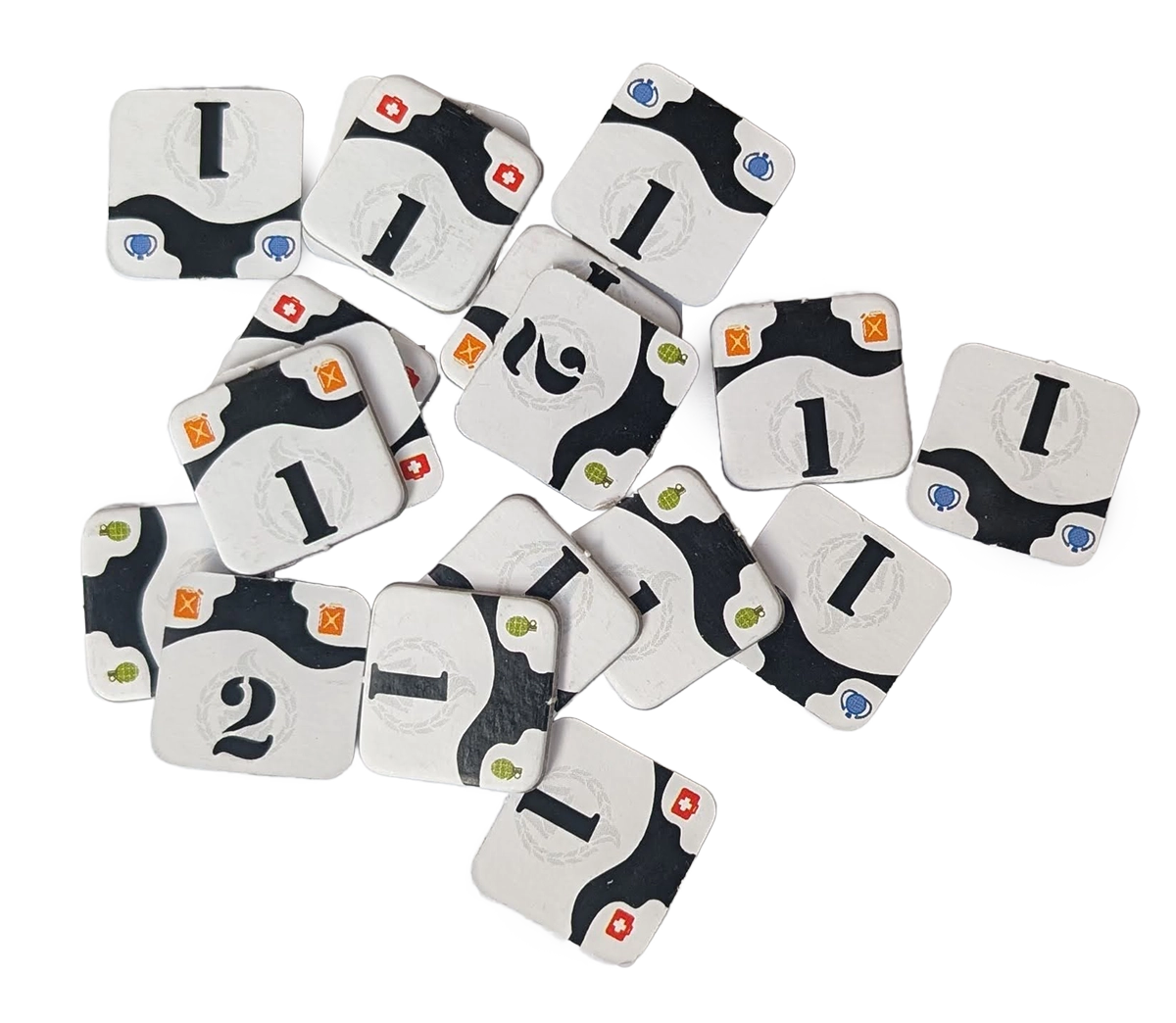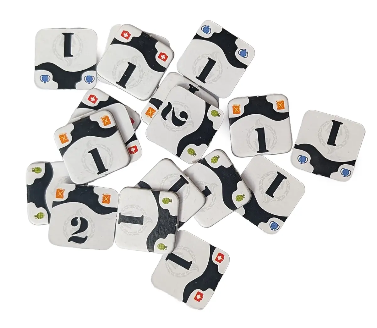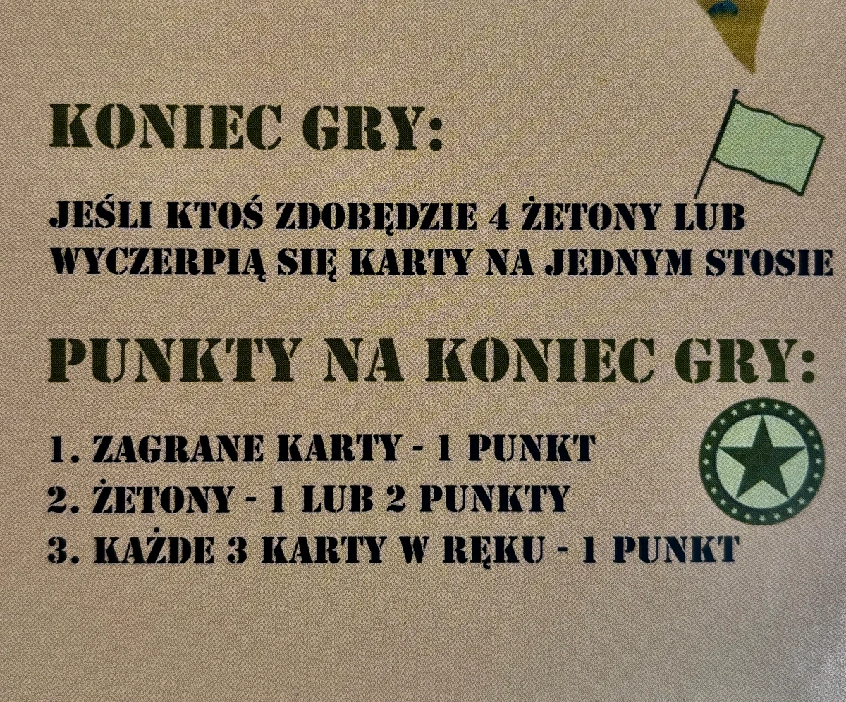 • 36 żetonów zasobów (amunicji, lekarstw, żywności i paliwa)