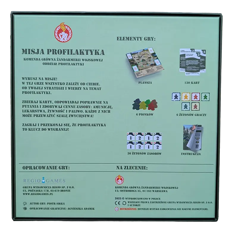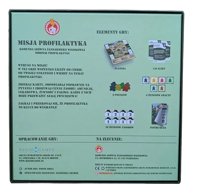 Gra planszowa Misja Profilaktyka produkcji RegioGames dla Żandarmerii Wojskowej