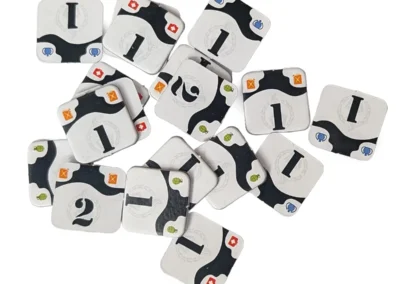 Po wykonaniu ruchu gracz odpowiada na pytanie z zagranej karty. Dobra odpowiedź? Otrzymujesz dodatkowe możliwości – aktywujesz umiejętność z karty, zbierasz cenne żetony zasobów. Zła odpowiedź? Karta idzie do pudełka, a Ty tracisz okazję do dalszych profitów.